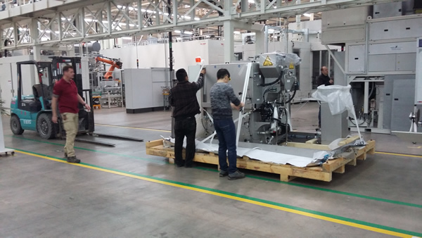 上圖為我北京設備搬遷在進行設備拆箱搬運工作。